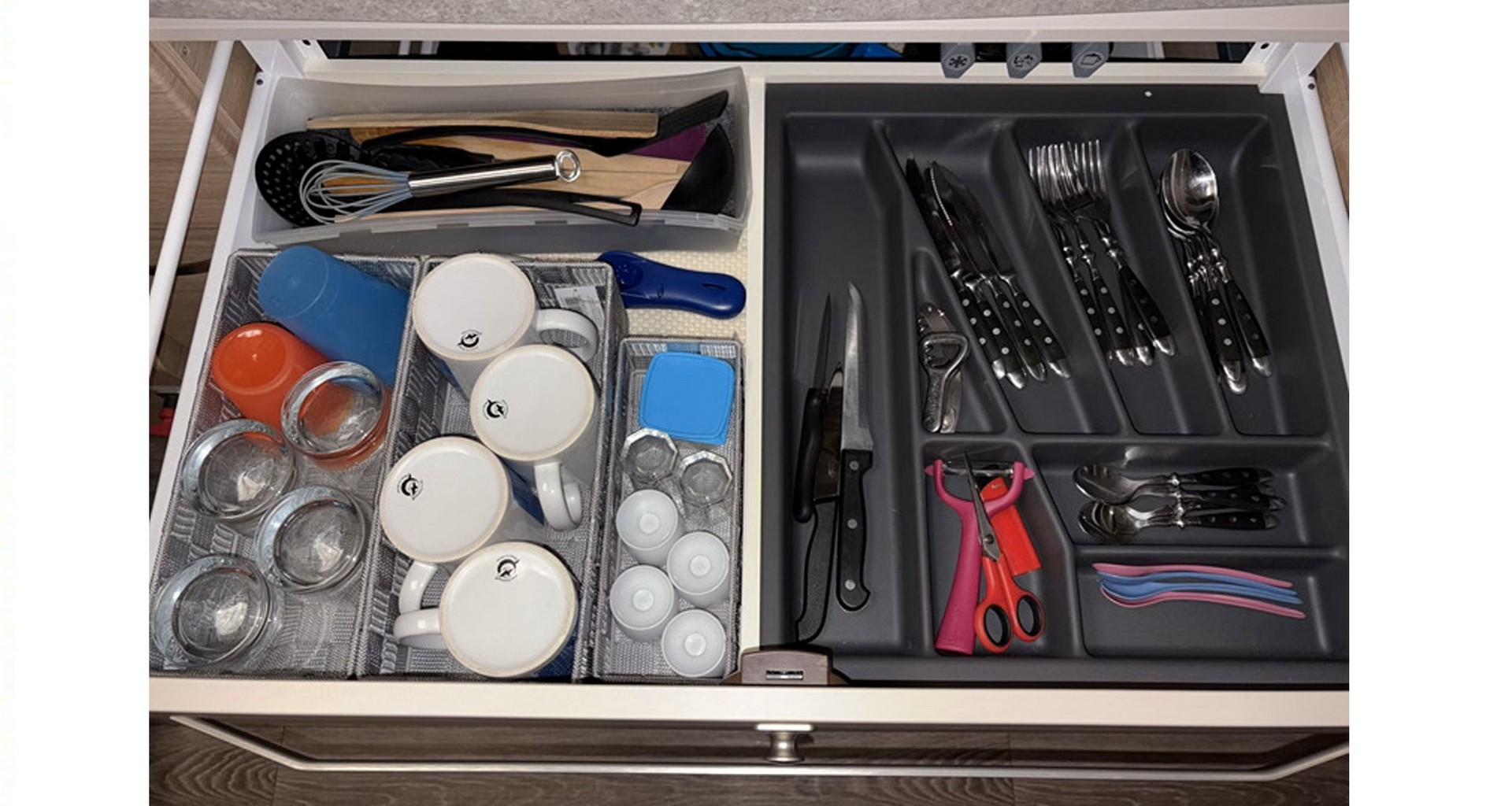 Wäscheleine, Putzmittel, Mülleimer, Küchenrolle |